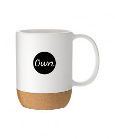 13 oz stoneware: matte color out / gloss color in with cork baseHand wash recommended. Do not microwave. Complies with FDA, Prop 65. 4.625" H x 5" W