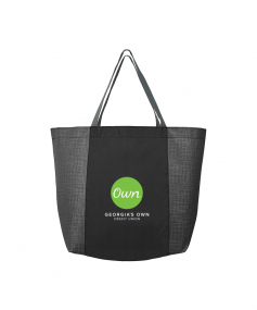 The Julian Plus Shopping Tote is constructed with 80 gram non-woven, coated water resistant polypropylene with stylish cross-hatch pattern, and a solid-color 210D polyester center section. This reusable tote bag measures 20" wide x 13" high, with an 8" wide gusset, so it's ideal for shopping. 20" W x 13" H x 8.66" D